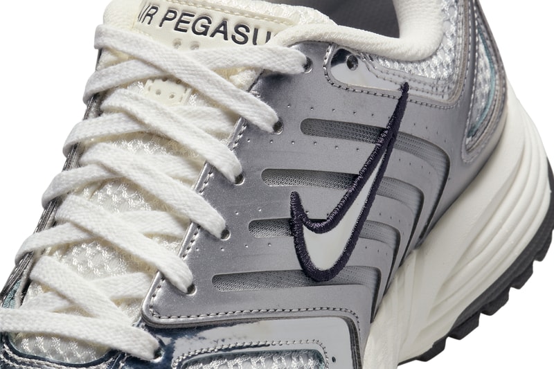 Now, with the Air Peg 2K5 back on shelves, a new “Chrome” iteration of the sneaker has been presented. The new colorway starts with a loose gauge mesh at the base in gray, covering it with shimmering “Chrome” overlays that are joined by matching Swooshes outlined in black at each side of the shoe. An off-white hue is present at the tongue, laces, lining and the Air-backed midsole while black rounds out the look at the rubber outsole.