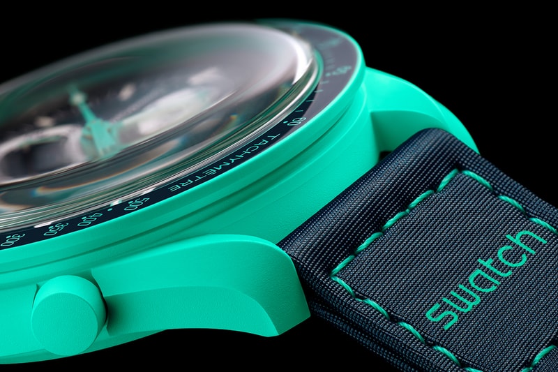 Encased in Swatch’s very own Bioceramic material, the Mission on Earth watches are modeled after OMEGA’s illustrious Speedmaster Moon Watch. The 42mm-wide watch case is dressed in a matter hue that nods to each variant’s inspiration, accompanied by a special velcro strap in a complementary palette.